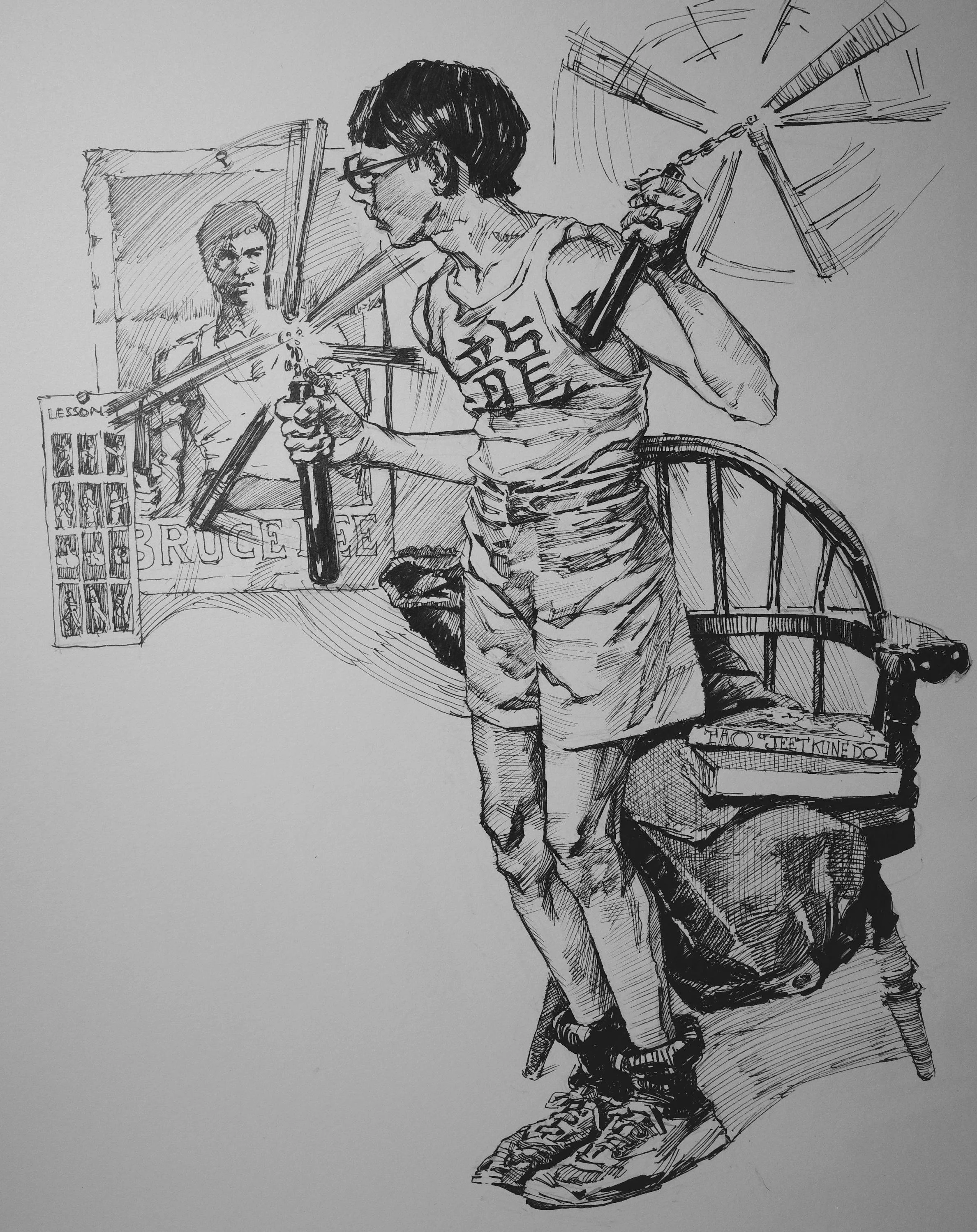 Moses Lee Illustration Ink Drawings Digital Work Charcoal and Graphite Bright Wall/Dark Room Movie Poster